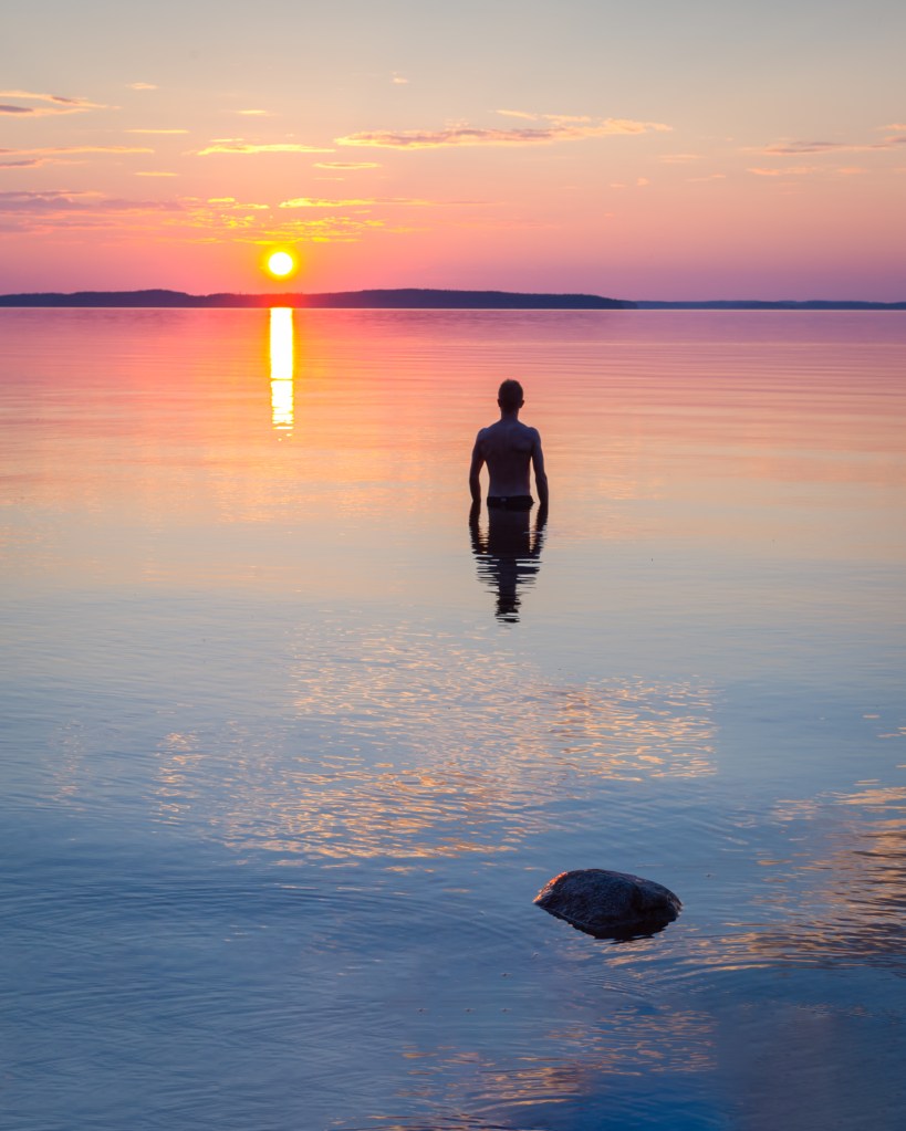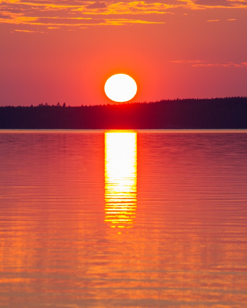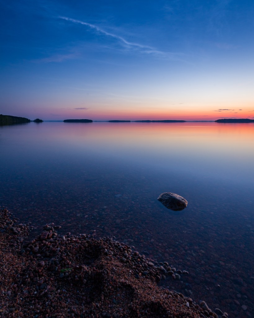 Ajettiin Saimaan rannalle viettämään iltaa ja alkuyötä. Keli oli tyyni ja todella lämmin. Illalla auringon laskiessa oli vielä 26 lämmintä.