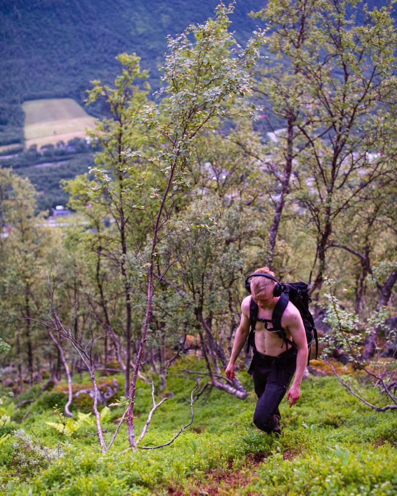 Starting point from Oteren. The path started to get steeper in the woods. I reached the treeline about in hour. Almost instantly after treeline came also snowline.