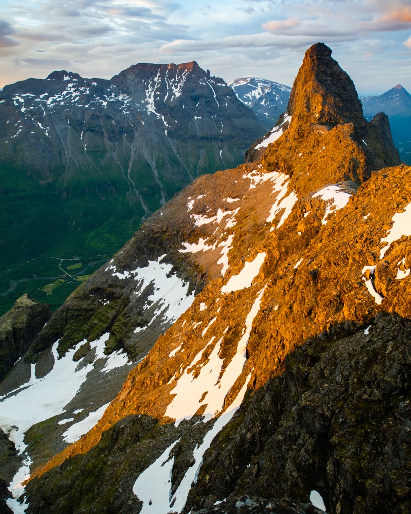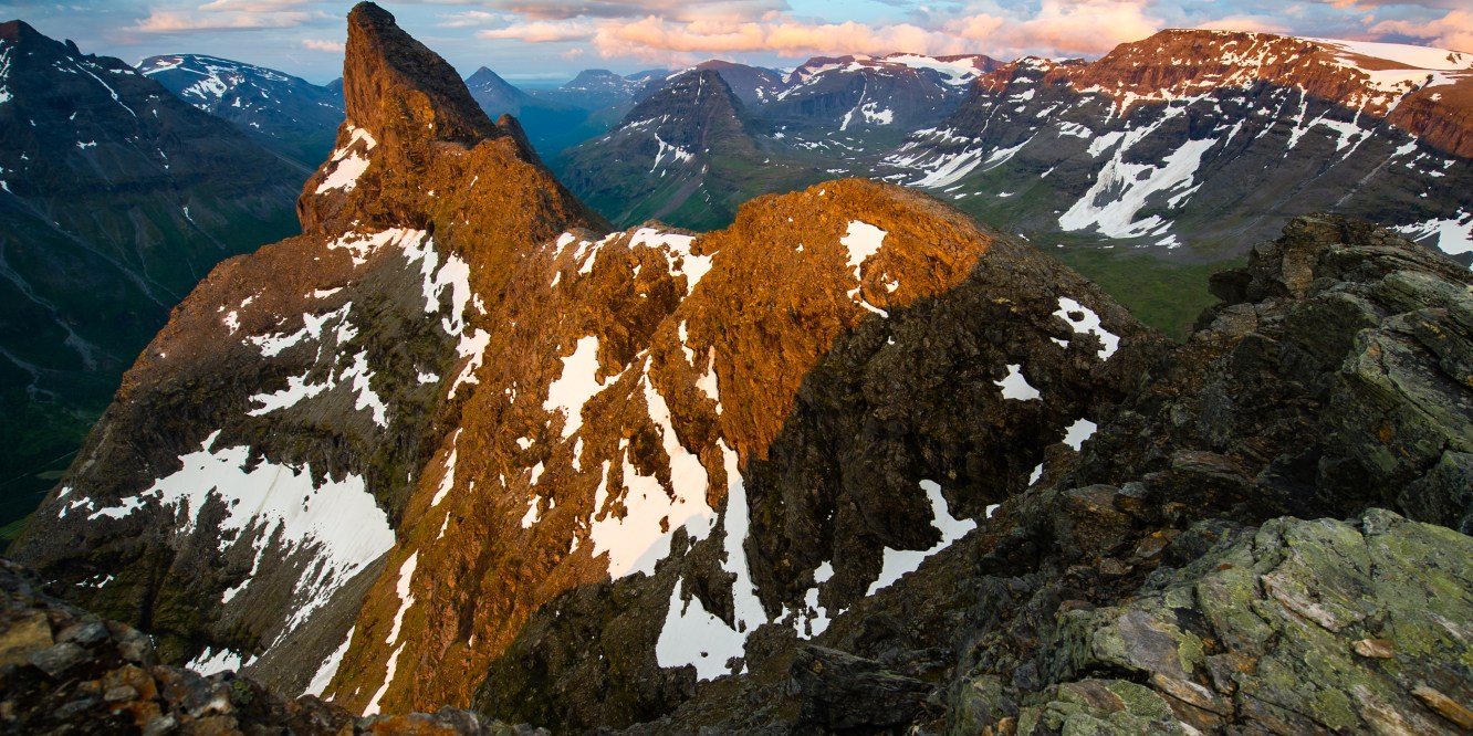 Polvartinden 1275m on left, Postdalstinden 1363m on right and Lemmetfjellet massif on center.