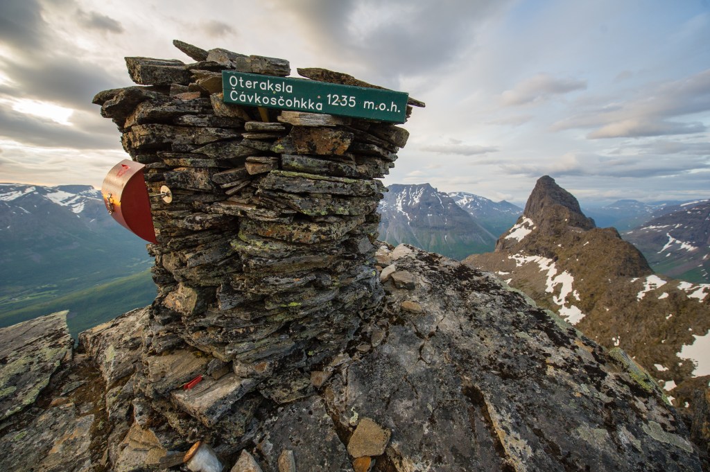 Cavkosvarri has two summits. Western summit Oteraksla 1235m and eastern summit Otertinden 1356m.