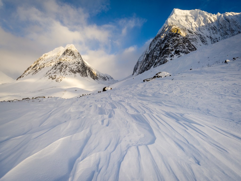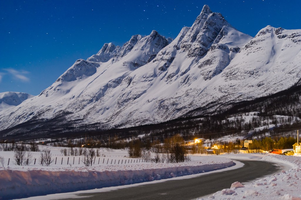 Yöllä ajelin vielä seuraavaan määränpäähän. Revontulet tanssi valkoisten huippujen yllä aamuyöhön asti.