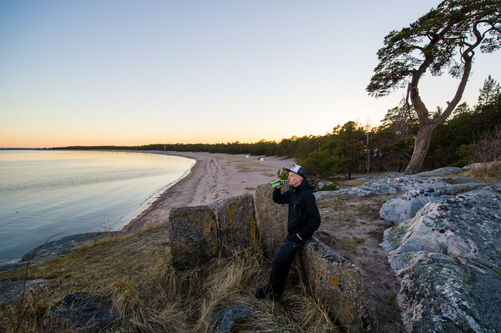 Asetuttiin Tulliniemen rantaan taloksi mäntyjen väliin. Jotain majoittumiskieltoja oli, mutta tuossa kohtaa vuotta ei vielä tullut ketään valittelemaan parkkipaikkojen tuhlaamisesta. Joten ei muuta kun Peroni pullosta korkki irti ja nauttimaan kevään ensimmäisestä reissusta.