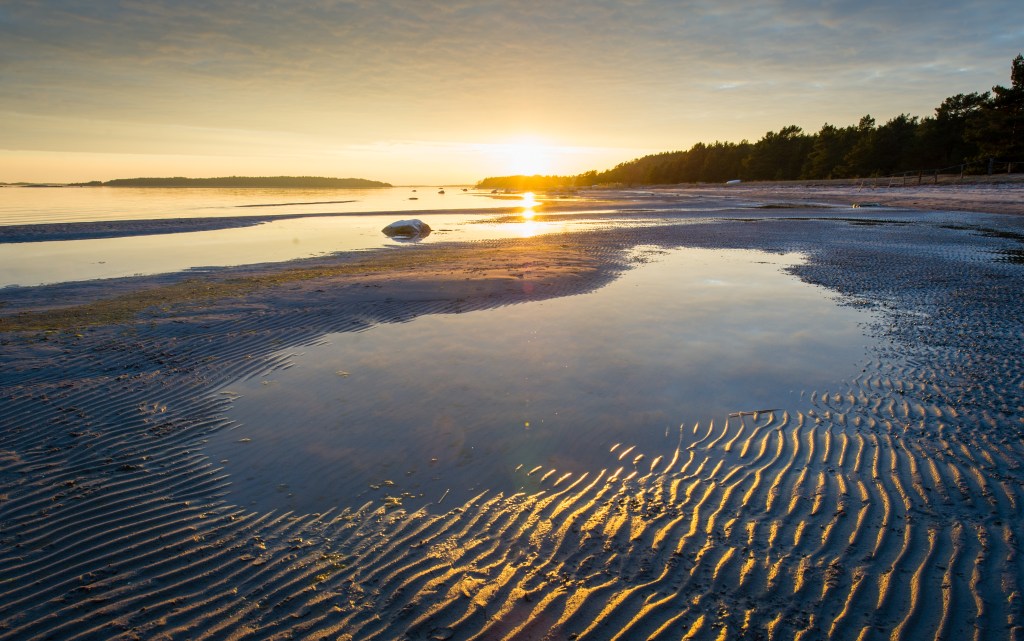 Halusin yhden hienon auringonlaskun tälle reissulle. Tällä rannalla se saatiin. Steppailin olut kädessä ympäri rantalätäköitä kompositioita etsien.