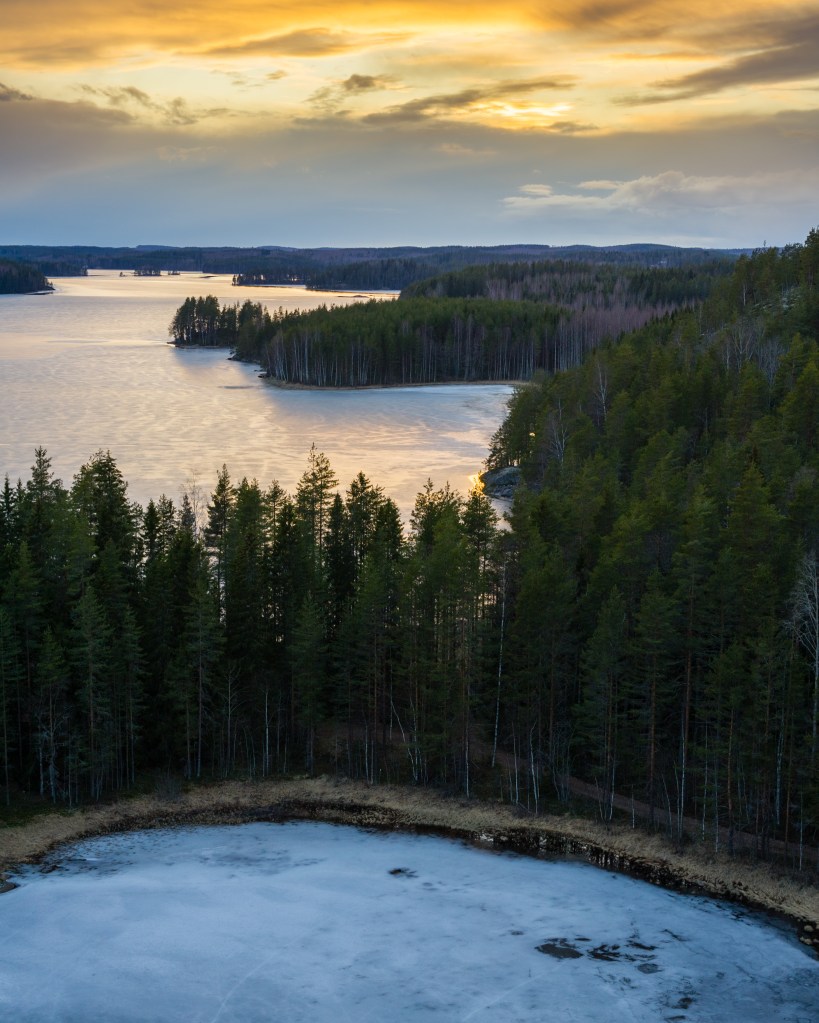 Miika ikuisti pääsiäismuna yllätykset järvimaiseman kera.