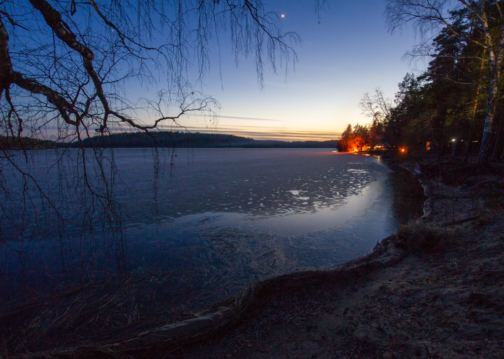 Lahdessa oli tuolloin noin sata metriä lähes kävelykuntoisen oloista jäätä. Kolmen tunnin kuluttua kävin lisäämässä paljun kamiinaan puita ja satuin katsomaan selälle päin otsalampulla. Kaikki jäät oli kadonnu. Liekkö joku virta imassu vai tuuli puhaltanu ne pois, mutta sai taas muutaman kerran katsoa ennen kuin uskoi mitä näki.