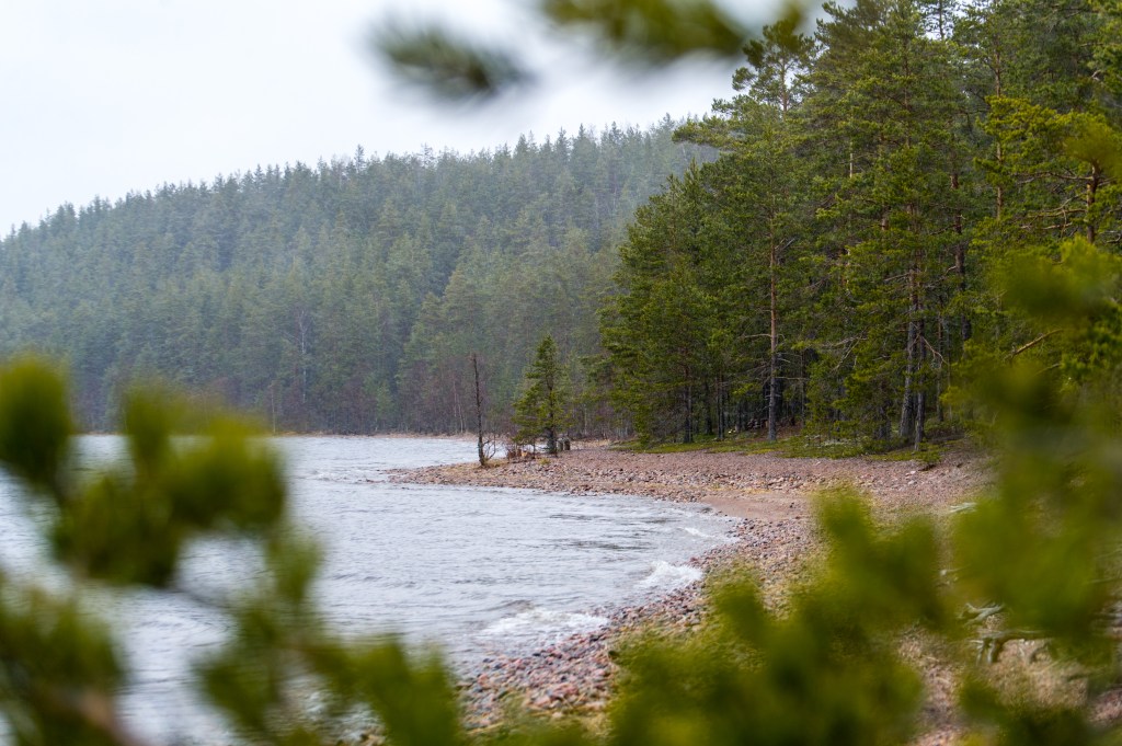 Vähän ennen Rastinniemeä jää vasemmalle puolelle, eli niemen etelä puolelle, Taipaleenlahti ja hiekkaranta. Käytiin kattomassa miltä näyttää, mutta tuuli oli brutaali.