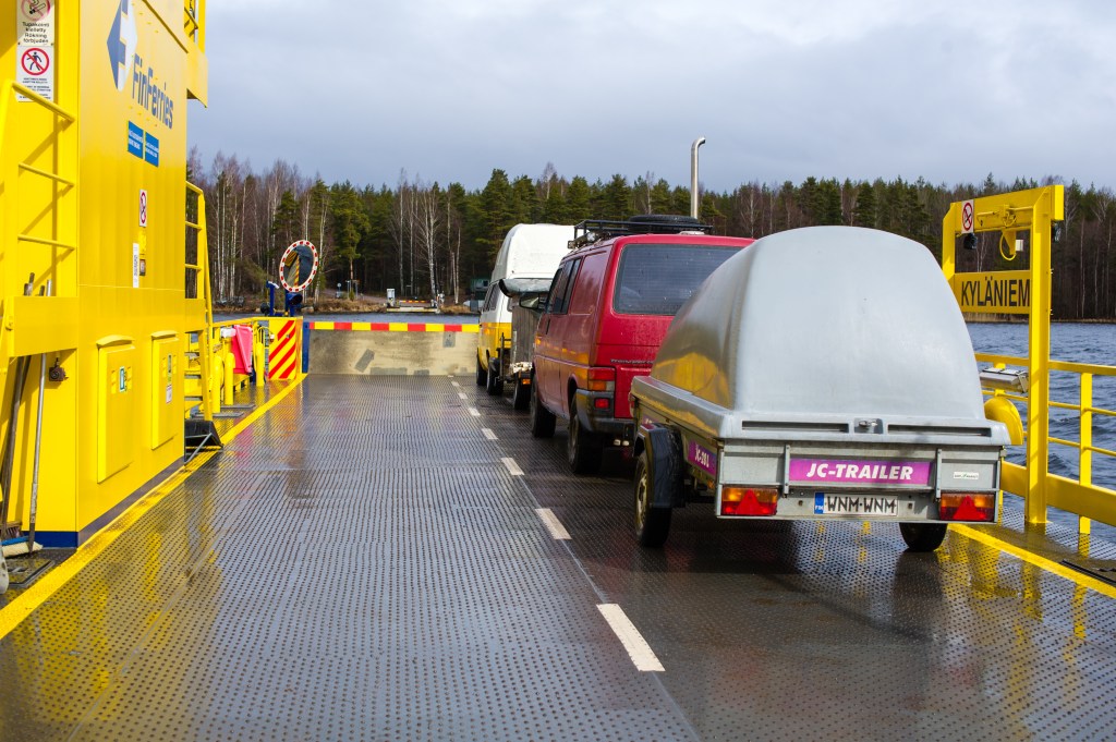 Seuraava etappi matkalla Pistohiekalle oli tämä lossi. Leuka miltein meni sijoiltaan kun ”lossi” ilmestyi puiden takaa näkyviin. Lossi oli korvattu vaijerittomalla, kolmikaistasella autolautalla. En tiennyt sisävesillä olevan tuommosia.