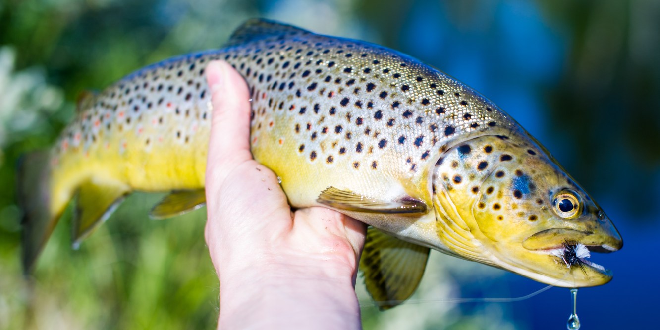 Reppu selästä, musta #12 Klinkhåmmer siiman päähän ja ensimmäinen heitto. Ei inaustakaan. Toinen heitto ja naps, siima kireälle! Tunsin, että kala on pieni. Kun sain kaverin ylös oli suu iki messingillä. Elämäni ensimmäinen tunnistettavan kokonen taimen pintaperholla. Uskomaton tunne. Mutta taliaivo jätti kameran reppuun ja tämä kaveri oli päästettävä äkkiä takasin veteen. Päästin kala takaisin ja pengoin kameran esiin. Uusi heitto keskelle suvantoa. 5 sekuntia ja naps! Siima jälleen kireällä ja kala ylös. Käden kastelu ja kalasta kuva muistoksi. Jes!