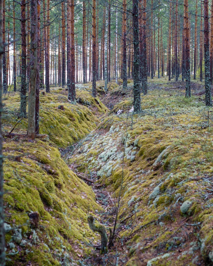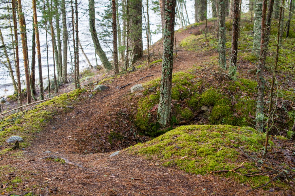 Hyvän näköstä polkua, vallihautaa ja lahtea oli matkan varrella.