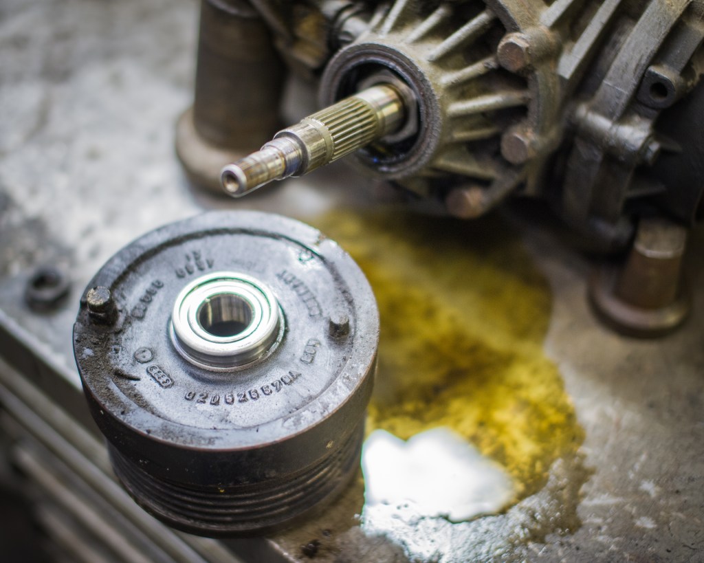 Seuraavana perän öljyvuodon kimppuun. Viskon mutteri lähti sormineen auki ja viskokin putosi akselilta lähes itsekseen. Öljy tehny tehtäväsä kai.