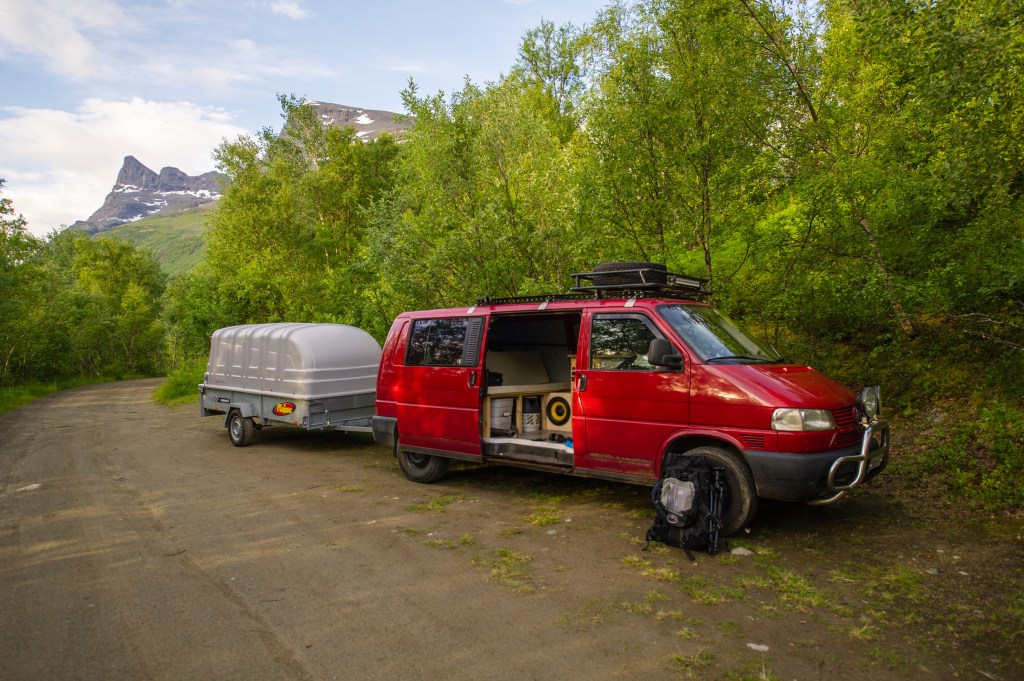 Haluttiin käydä Lyngenin niemimaan pohjois kärjessä katsomassa laivan hylkyä. Lähdettiin kokeilemaan minulle ja Jannelle tuttuun leiripaikkaan Russelvfjelletin juurelle olisiko se vapaana.