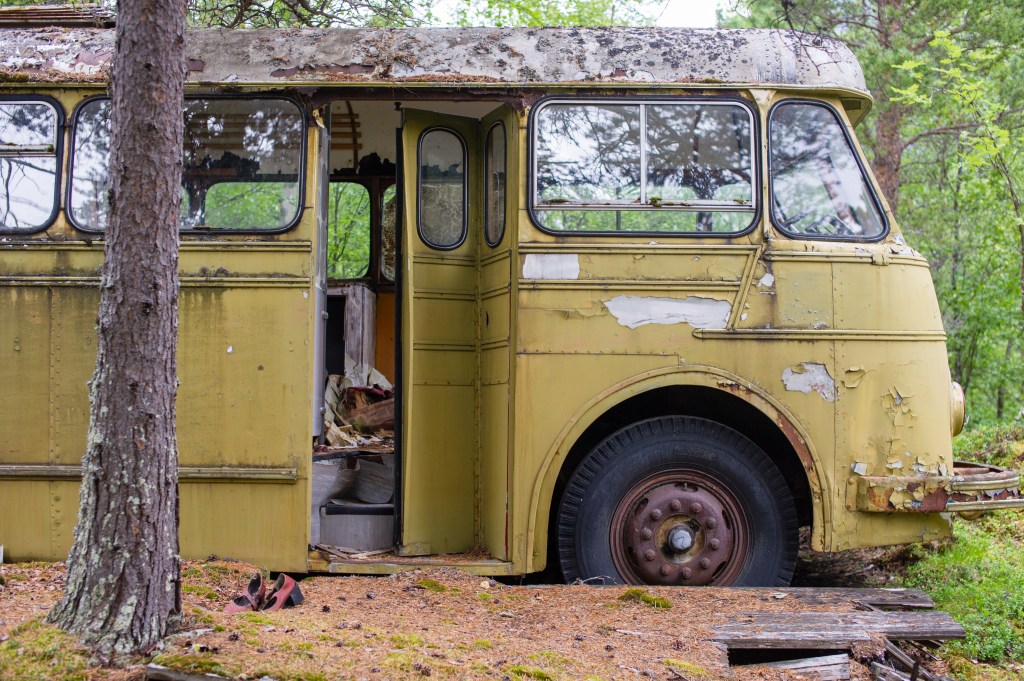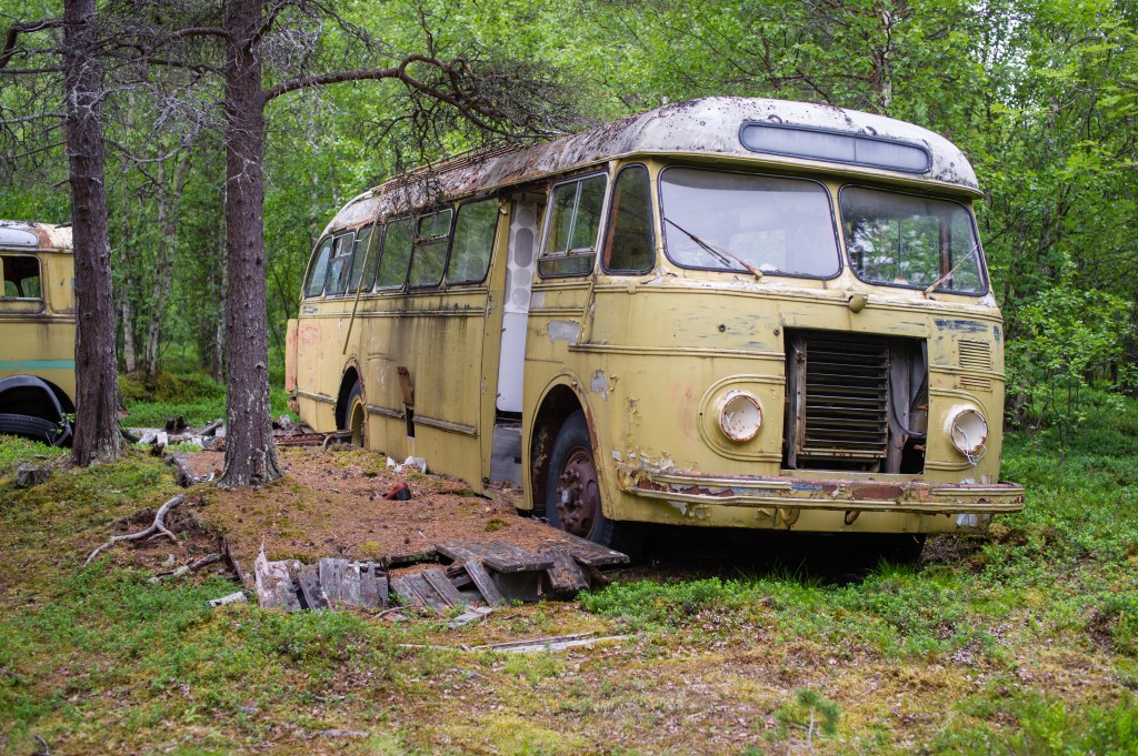 Suunnittelin päiväunipaikkaa laaksosta kun huomasin tien vieressä metässä kaksi hylättyä bussia. Muistin nuo nähneeni joskus aiemminkin mutten viimeeksi jaksanu lähteä katsomaan lähempää. Nyt oli mentävä.
