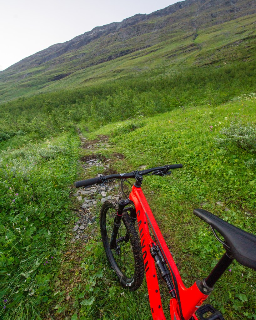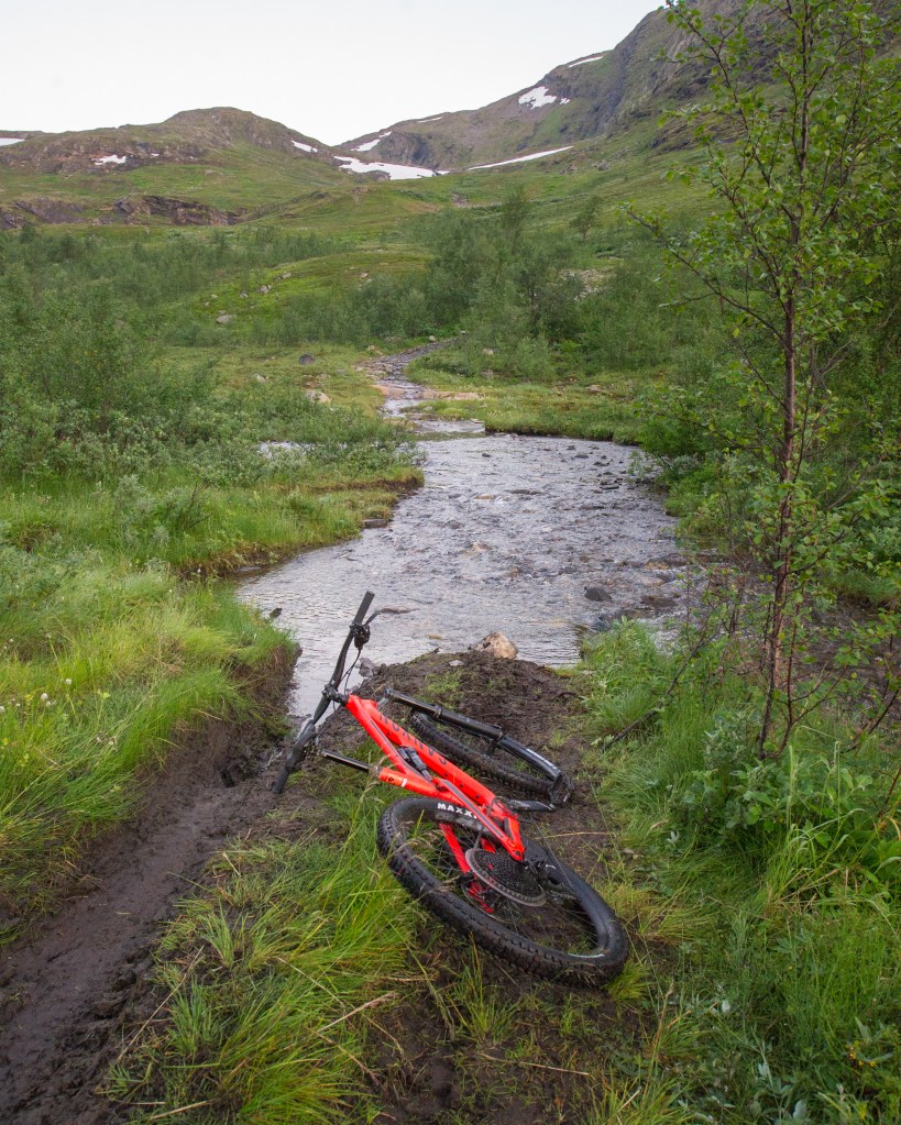 Kaveri lähti kiipeämään Moskkogaisille Kitdalenin perällä ja minä jalkatoipilaana Oterakslan jäliltä lähtin fillarilla kiertämään polkuja ja Lakvarittedissä osallisena olevia hiekkateitä.