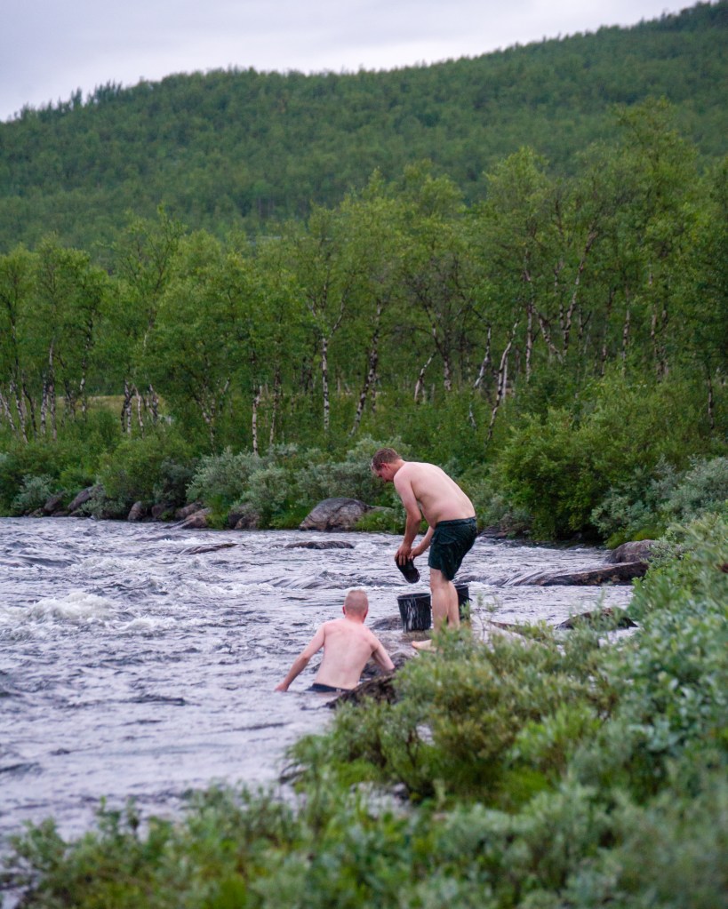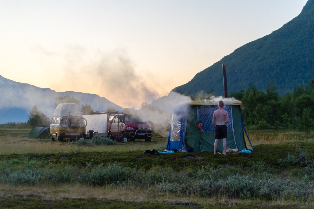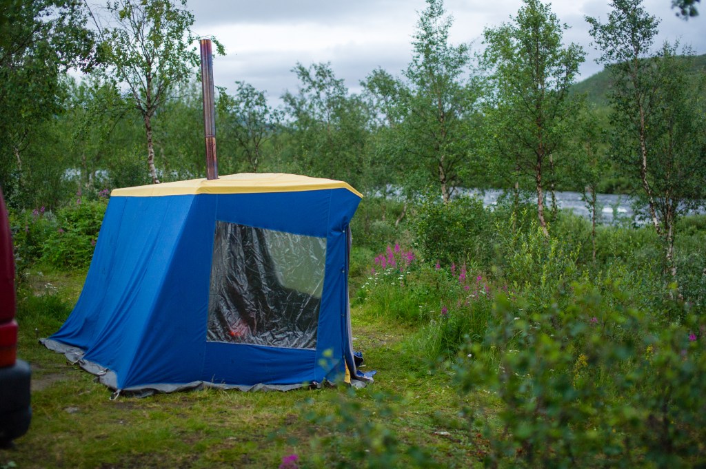 Iloisen jälleennäkemisen jälkeen suunnattiin saunan pystytys hommiin leiriin.