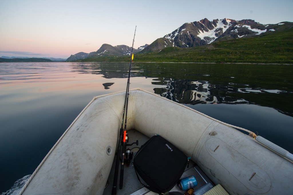Perillä Kågenilla kyhättiin leiri pystyyn, täytettiin vene ja lähettiin illansuussa merelle kokeilemaan kalastusta laskuvedestä huolimatta.