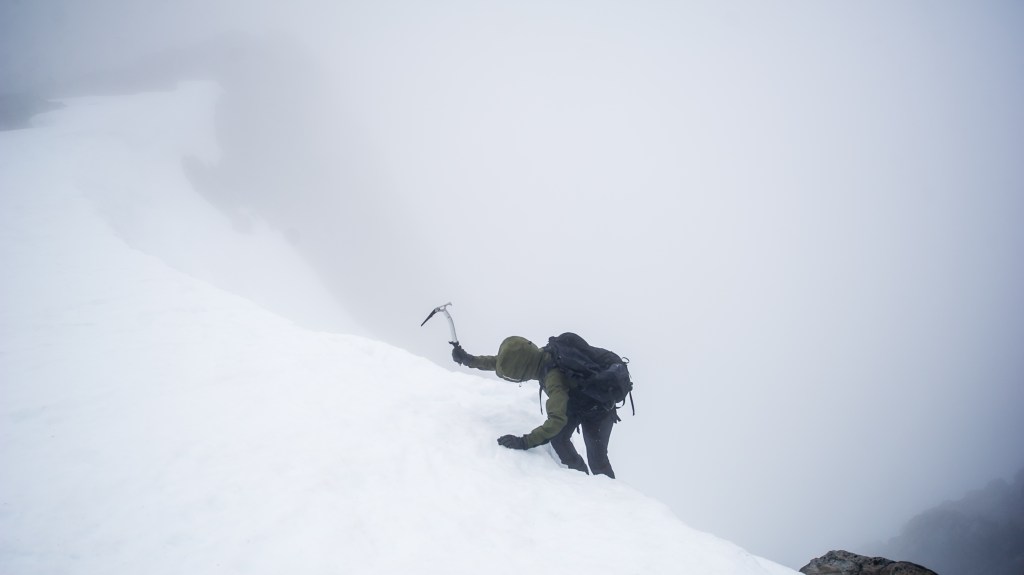 Viime syksyn kesken jäänyt nousu kummitteli mielessä. Tuijotin täysin pilvetöntä huippua silmät ristissä. ”Tää täytyy tehdä tänään, eikä huomenna.”
