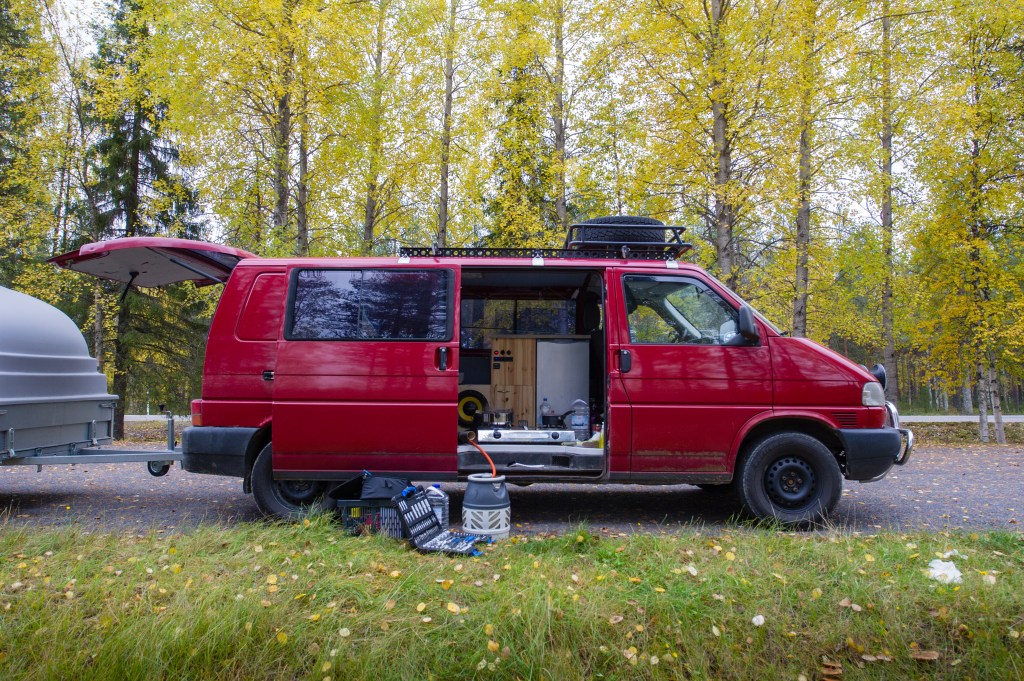 Lähdin seuraavana päivänä joskus klo 18 aikoihin. Syysmyrsky teki tuloaan. Vettä tuli reilusti ja tuuli lujaa. Tien urat oli täynnä vettä. Ei huvittanu ajaa kovin myöhään, joten vedin Kolilla sivuun ja nukkumaan.