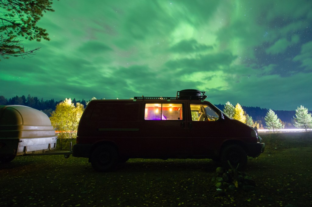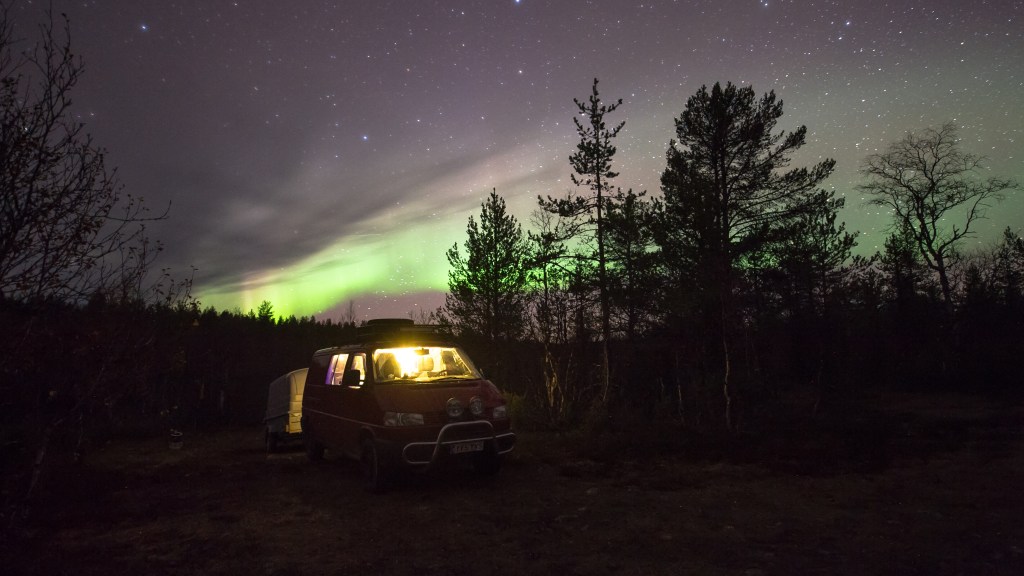 Saamelaisperheen koira oli vastarannalla aivan hiljaa puoli tuntia kun katselin tähtiä. Sitten alkoi yhtäkkiä raivokas haukkuminen ja metsässä räsähti joku. Kittasin kaljan tyhjäksi, kamat kantoon ja juoksin viivana autolle. 😀 En tiedä mikä räsähti metässä, mutta mieli villiintyi siitä ainakin.