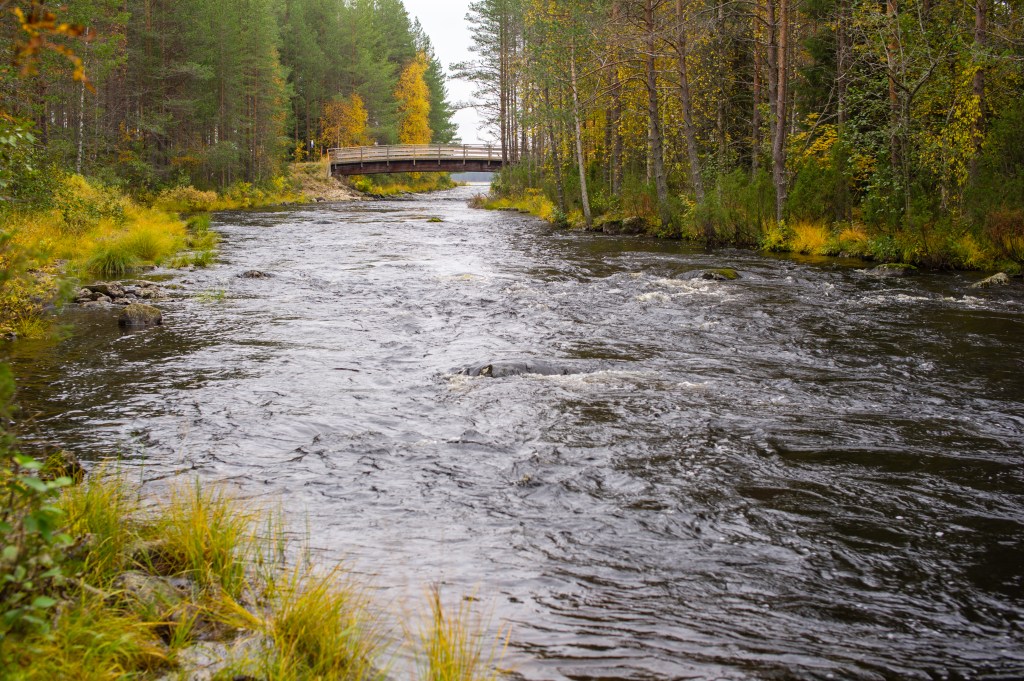 Kultapolku on osa Saariselkä MTB reitistöä. Reitin ainoolla vesistöylityksellä ajattelin vaan polkasta kuivin jaloin virran poikki toiselle puolelle ja sivuuttaa kivistä kasatun ”kahlaamon”.