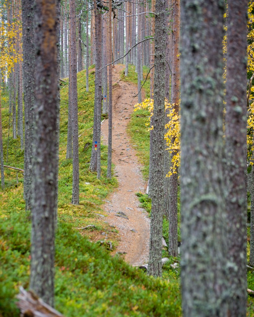 Alamäki pätkä alkamassa Urho Kekkosen Kansallispuiston suuntaan.