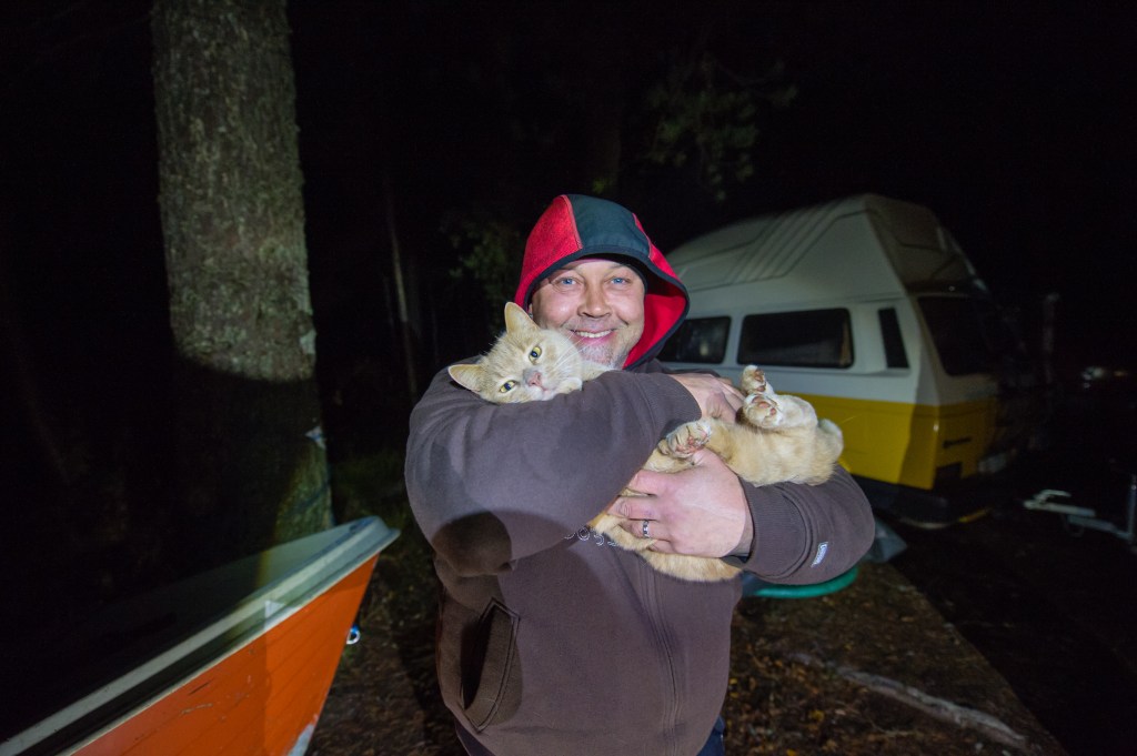 Antti ihmetteli kun joku hiero häne jalkaasa pimeessä. Luuli ensin että Timppa pelleilee, mutta ei. ”Mikä täällä on?! Koira? Eiku Kissa!”