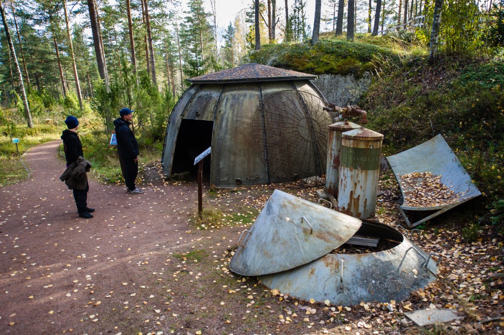 Kävästiin autoilla lounaalla ja lähettiin Salpalinja museon suuntaan metsän läpi.