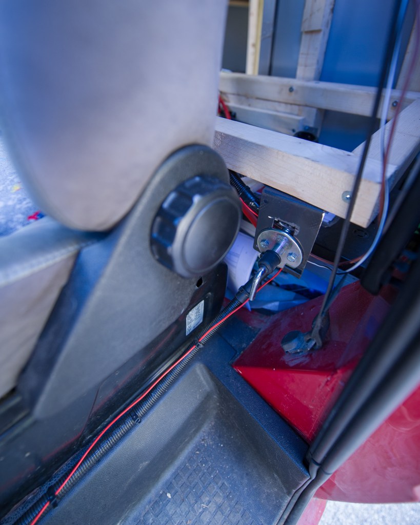 Akun latauspiirin päävirtakatkasija päätyi kuskin penkin viereen. johto tulee tulipellistä sisään, välissä sulake, tuo katkasija ja erotusrele.