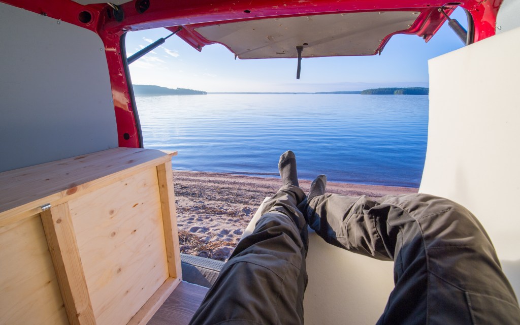 Ja ensimmäinen yö Lepänkannossa. Päätä huimasi mahtavan sään lisäksi autossa käryävä tuore muutoskatsastusleima.