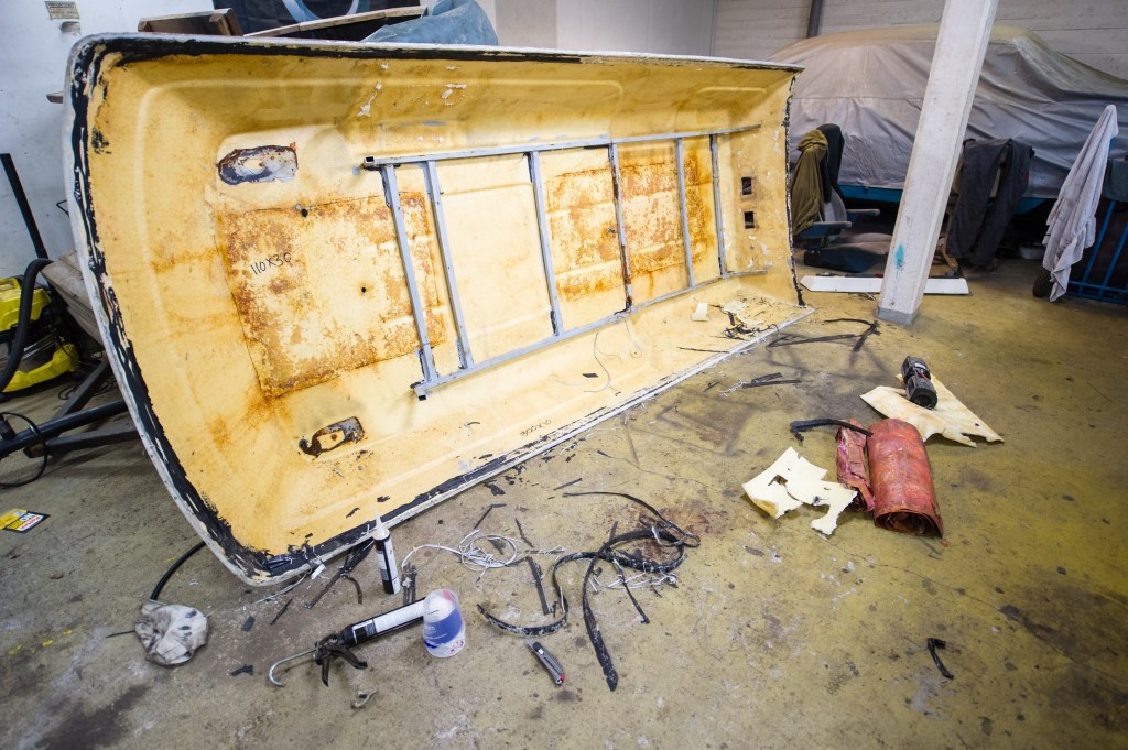 Liimasaumojen putsausta ja muut töryt irti. Takana oli joku raitisilma puhallin, muualla teräspaloja ja erinäisiä vaahtomuovipalasia. Antennien keinomaitakin kuparilevyjen muodossa.