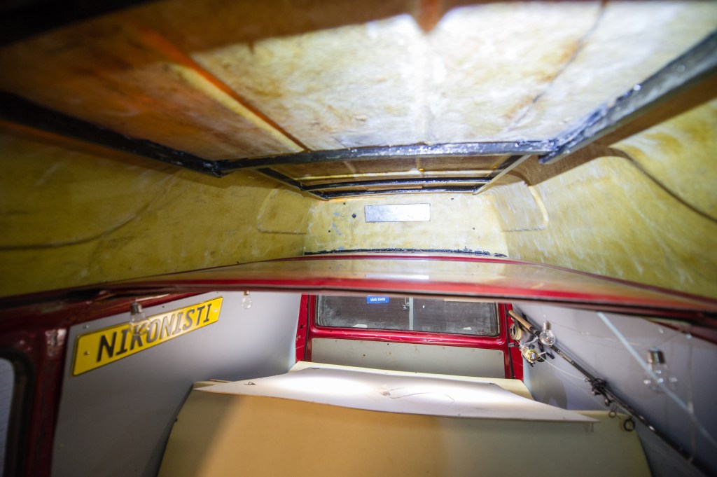 Paljastu että kattokorokkeen ulko ja sisäkuoren välissä on aika taljon tavaraa. putkikehikko, joka oli liimattu kiinni ulkokuoreen ja jostain se oli myös kiinni sisäkuoressa. Kehikossa oli kiinni myös sähkökeskusta yms. Kehikon jalat katkastiin rynnäkkösahalla.