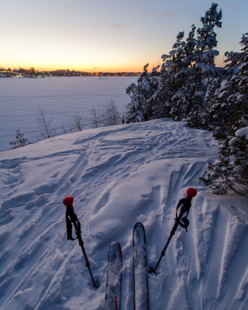 Rensselit päälle, ovesta ulos, karvat suksien pohjiin ja sukset jalkaan.