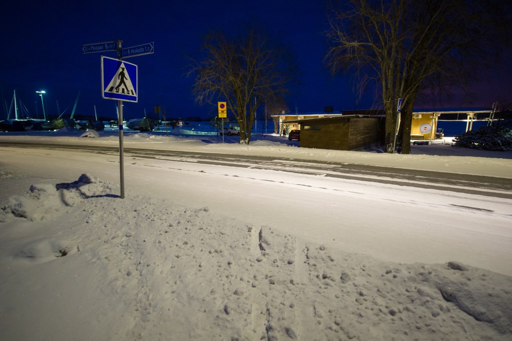 Maihin päästyä tien yli hiihtäen oikeaoppisesti tietenkin suojatietä pitkin.
