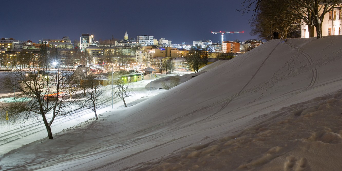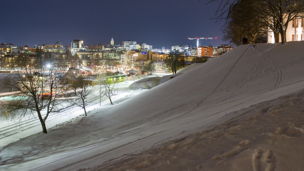 Viimeset laskut sataman puolella kaupungin valoissa.