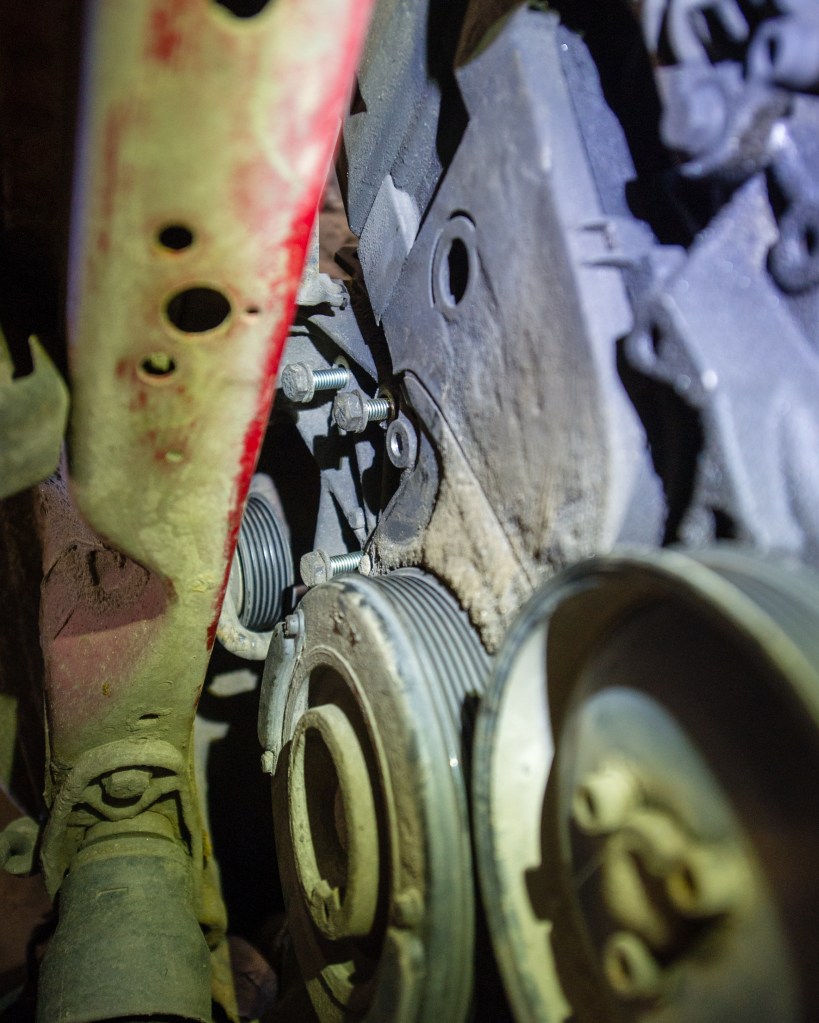 Homma alkoi yläpuolisten rojujen purkamisella. Raitisilmasuodatin kotelo, pissapojansäiliön täyttötorvi, imutorvi, letkukiinnikkeet kiristimen lohkosta ja moottorin jakopään puoleinen kannatin. Tässä kohtaa luonnollisesti tunkki öljypohjan alle.