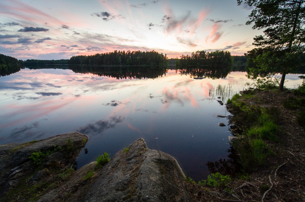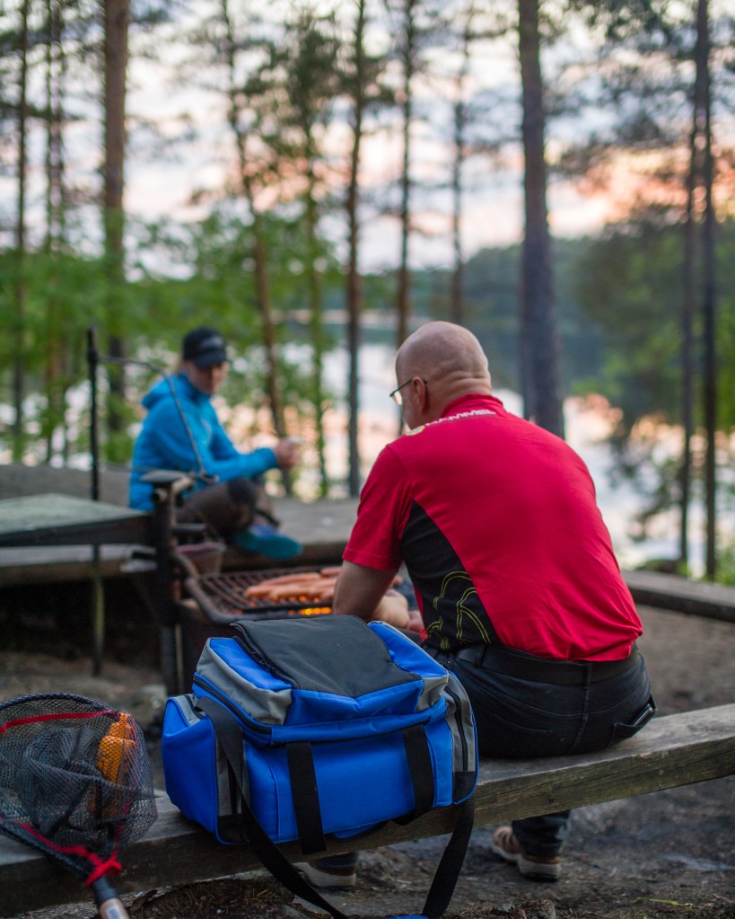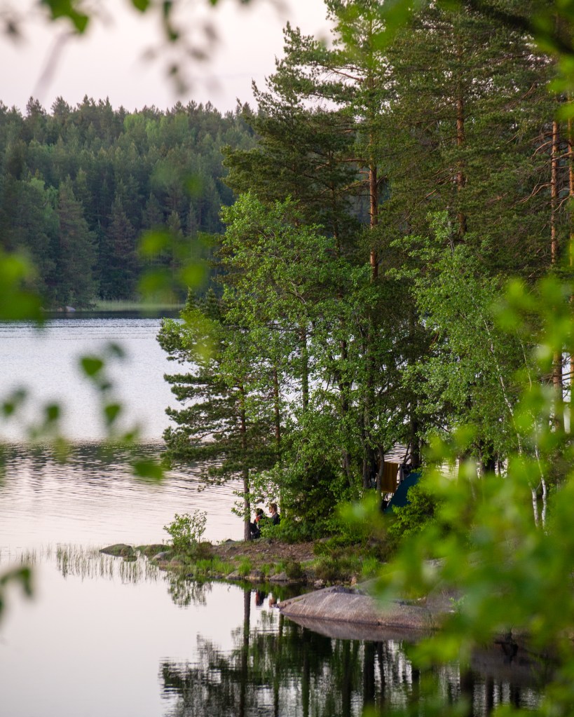 Kesähelteinen viikonloppu Teijon kansallispuistossa Matildanjärvellä. Haaveissa kirjolohi ja virkistävät pulahtelut järvessä.