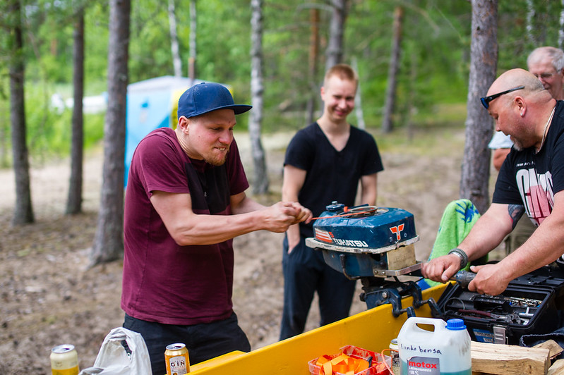 Ennen kalastusta piti kokeilla, millä moottorilla tänään päästään kalaan.
