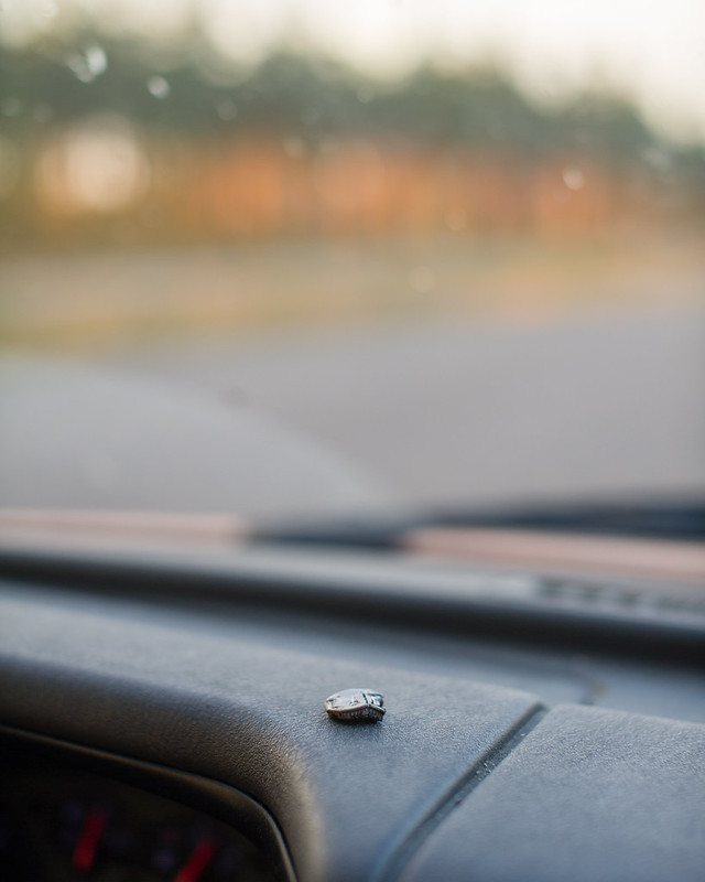 Sivuovi kun pamahti kiinni, ekat pisarat tippui tuulilasille. Ei keretty kuvasta ulos ennen kun alkoi tulla kaatamalla vettä. Nappi ajotus.