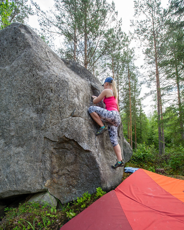 Kokeiltiin piruuttaan ekaa 6a reittiä ikinä. Muutoin sujui kyllä, mutta istumalähtö ei. Eli ei onnistumisia tuolla greidillä edelleenkään. Mutta ei annettu asian haitata. Pääasia että pääsi kiipeemään.