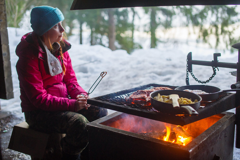 Sitten leiriin valmistamaan herkullinen pihvi ja ranskalais illallinen.