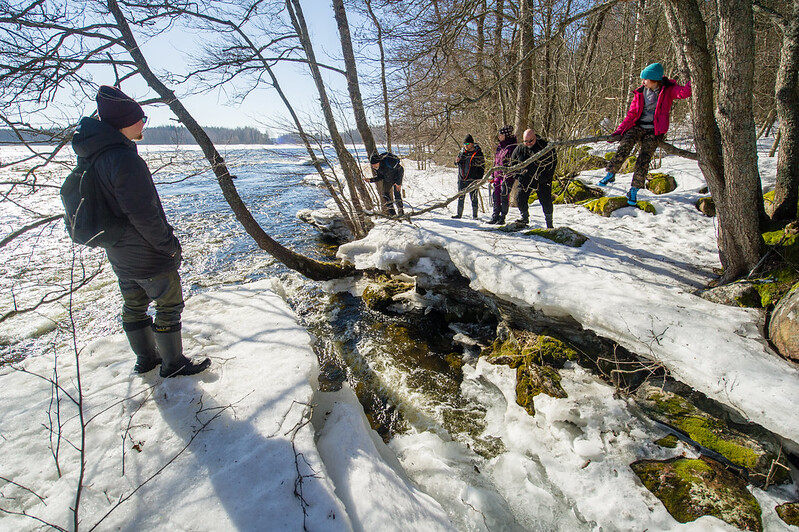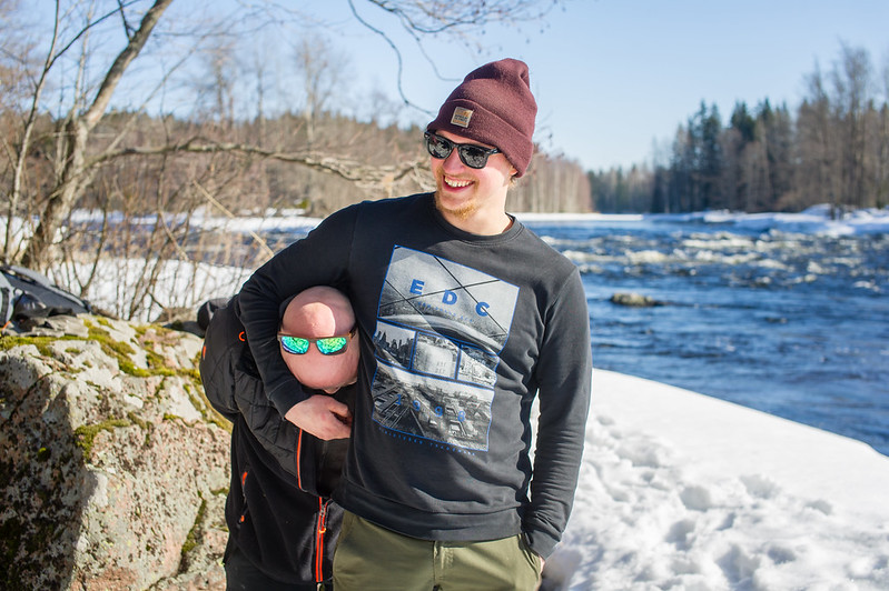 Aamu valkeni kauniina. Siispä lähdimmä koko kööri lenkille Ahvionkoskille.