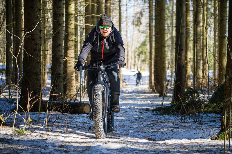 Sport Simo ja Sport Timo kiitivät sähköpyörillä tukka hulmuten ulos metsästä.