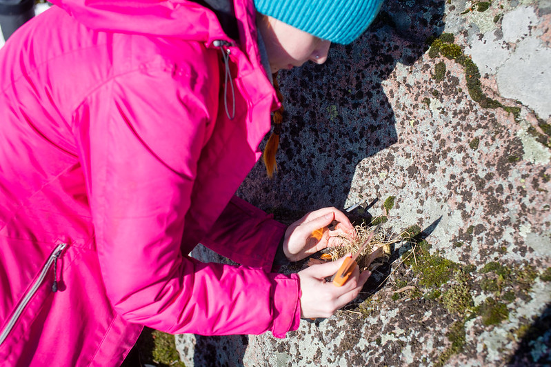 Mätettiin tarvittavat kamat reppuun ja noustiin kallion päälle. Oltiin mätetty muut romut reitin alle että löydetään ylhäältä käsin oikea ankkuri.