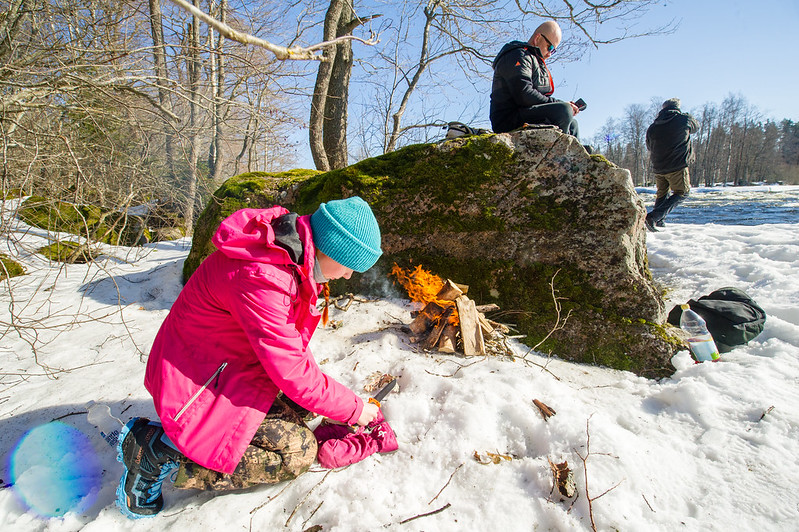 Sanni harjotteli tuluksien kanssa sytyttämistä.