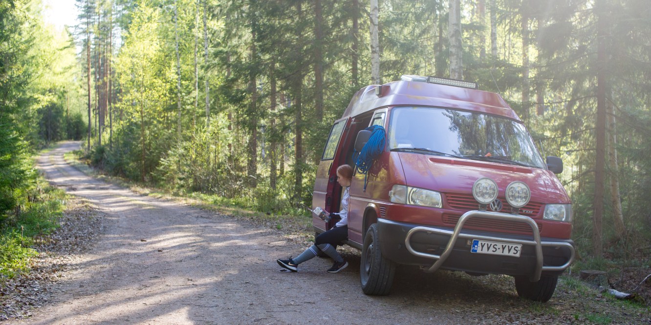 Aamu valkeni. Ajettiin Haukkakalliolle ja mentiin kokeilemaan ekoja nelosen lyhyitä reittejä auton vieressä aamupalan voimin. Tarkotus myöhemmin mennä autolle tekemään ruoka ja sitten patikoida vajaa kilsa kallion toiseen päähän.