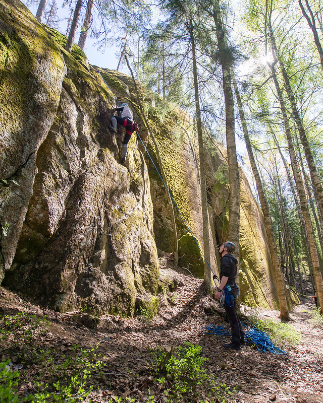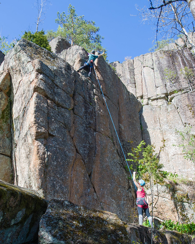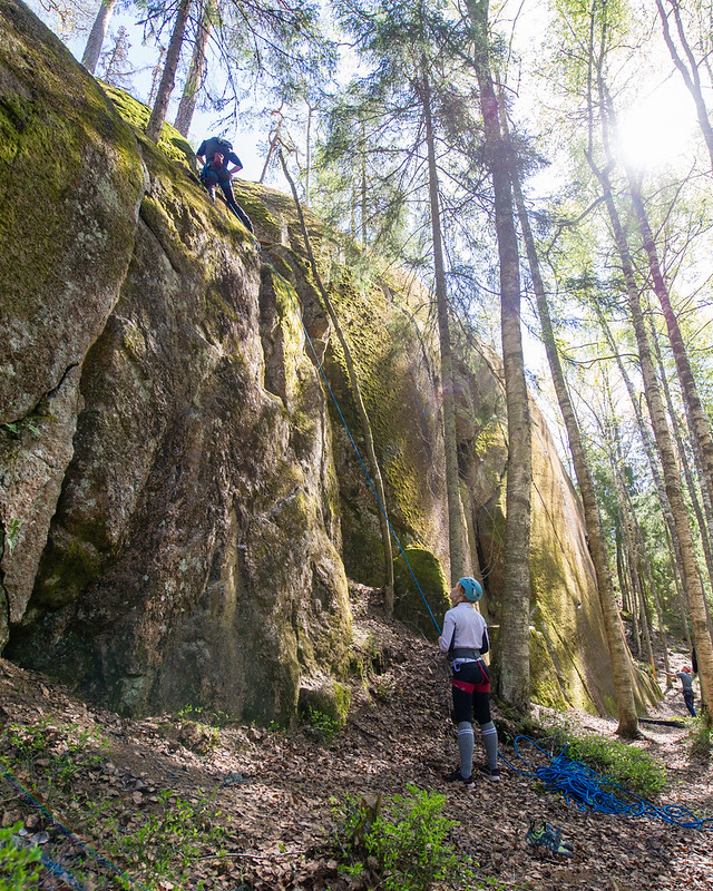 Lauantaina Korkeampia reittejä Haukkakalliolla Ruotsinpyhtäällä.