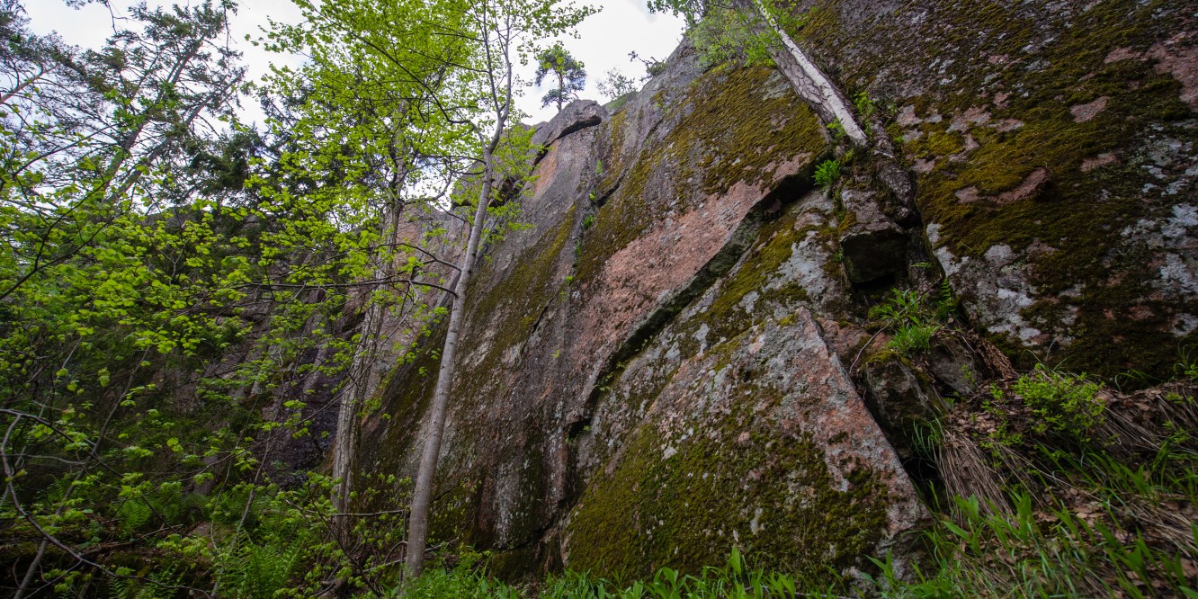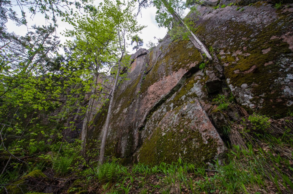 Oltiin melko varmoja että päästään kiipeemään korkeeta helppoa reittiä, kun lähettiin Haminan Suurivuorelle. Aikanaan kun löydettiin seinä metsän siimeksessä, todettiin että seinä on niin vihreenä sammaleesta ja märkänä, että luovutettiin. Tarttis pitää putsaus talkoot joskus. 😀