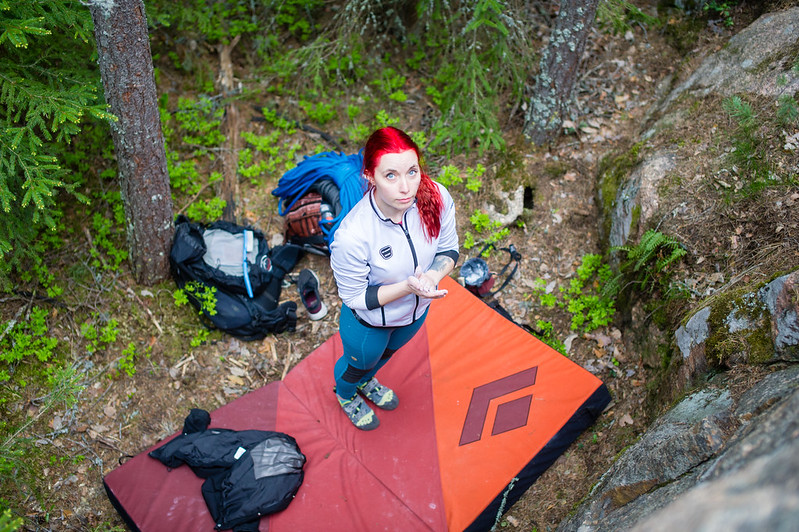 Sitten kokeilemaan yhtä vitosen köysi reittiä, joka päätyi todelliseen tenkka poohon. Ei pienintäkään hajua kuinka oltas päästy eteenpäin cruxilta. Parin tunnin ”lämmittely” ympäri aluetta saattoi toki syödä hieman energiaa. 3h 40min kaikkinensa oltiin touhuamassa alueella.