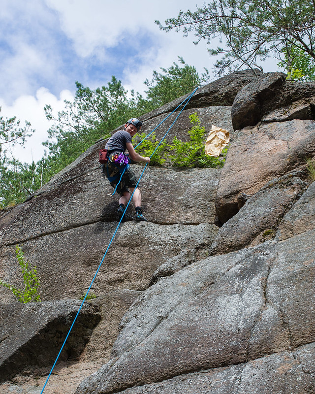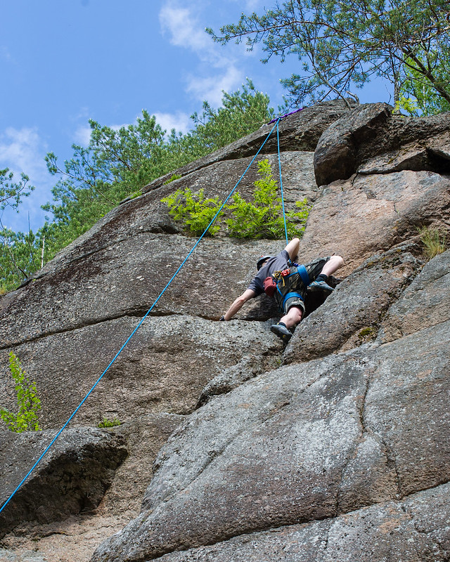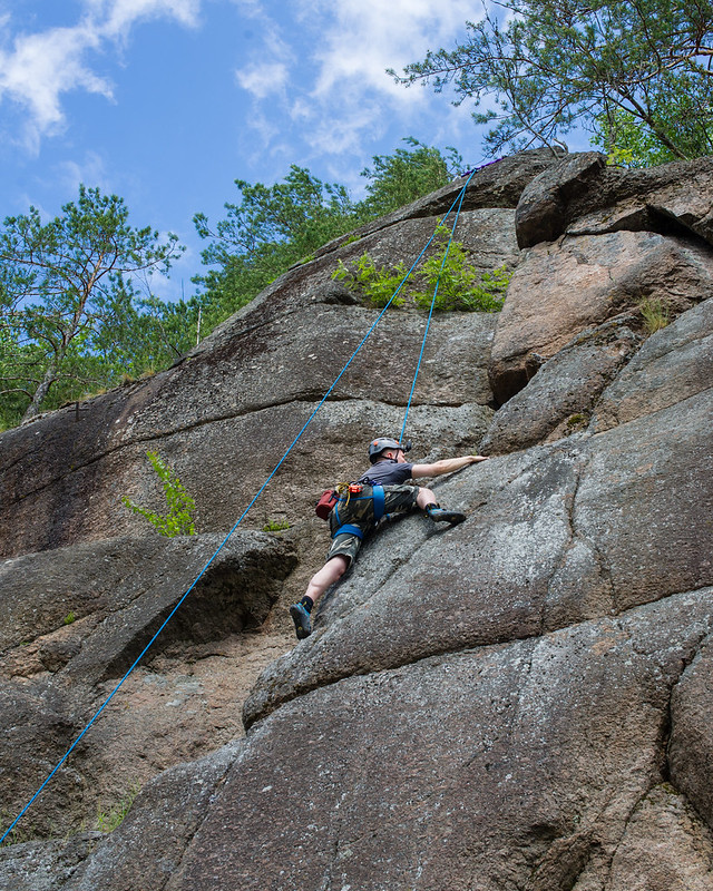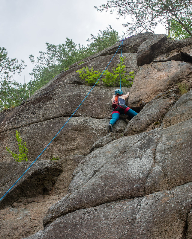 Viimeeksi kun itse kiipesin reitin, bluffasin kahdesa kohtaa. Alussa tuli napattua kiinni vanhasta kiilasta raossa ja lopussa puun karahkasta. Tällä kertaa ohitin kiilan käyttämällä vastikään youtuupista oppimia rako kiipeilytaitoja. Mutta yläällä haparoin ja koitin vetää rapakivi kahvasta, jonka pitävyys ei vakuuttanut ja käsi livahti taas puun karahkaan.. Per…