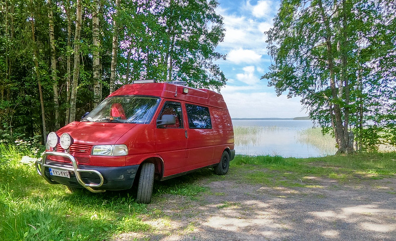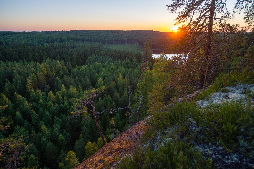 Yöllä kurvailtiin ikkunat levällää Repoveden kansallispuiston kulmille yöksi.