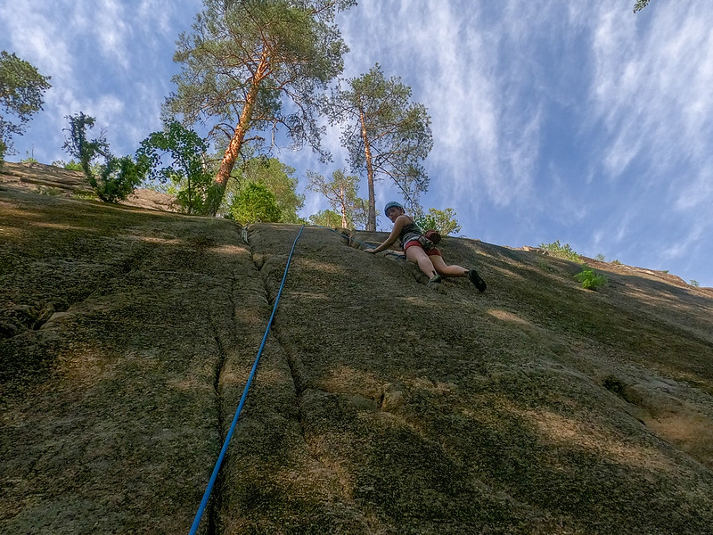 Kirnun yläpuolelta kuvailu kasahti metsikköön kun kiivettiin ylös kalliolle ja huomattiin että oletetussa kirnun kohdassa kallio jatkuu vielä toiset 15m ylöspäin.